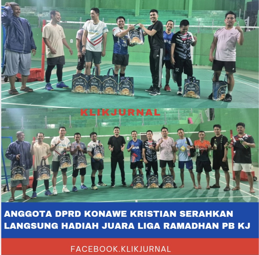 KlikJurnal.Com.Konawe.Memanfaatkan momentum bulan suci Ramadhan, Persatuan Bulutangkis Klik Jurnal (PB.KJ) sukses menyelenggarakan turnamen bertajuk “Liga Ramadhan”. Kegiatan yang berlangsung penuh kehangatan ini resmi berakhir pada Jumat malam (12/03/2026) di GOR Abunawas, Kabupaten Konawe.