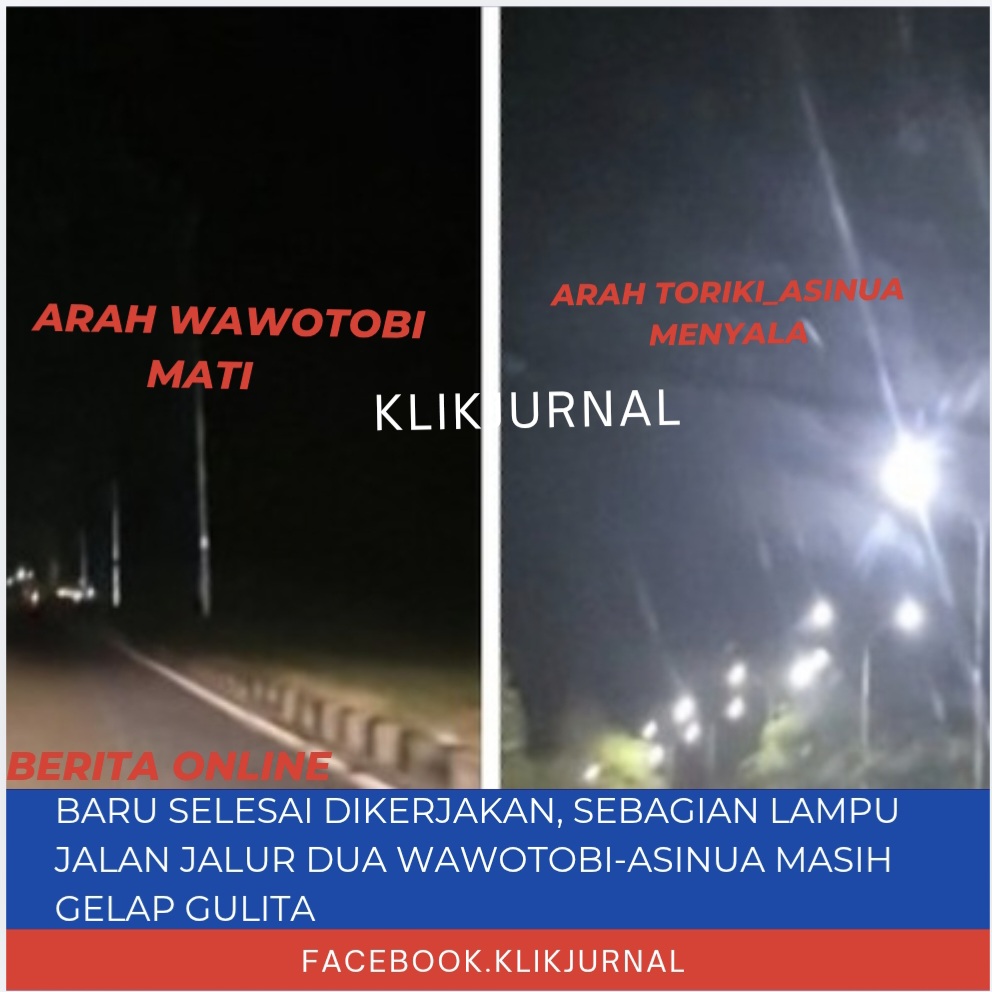 Berdasarkan pantauan media klikjurnal.Com. dilapangan, kondisi kontras terlihat di sepanjang jalur utama tersebut. Lampu jalan dari arah Kelurahan Toriki menuju Kelurahan Asinua terpantau sudah menyala normal.