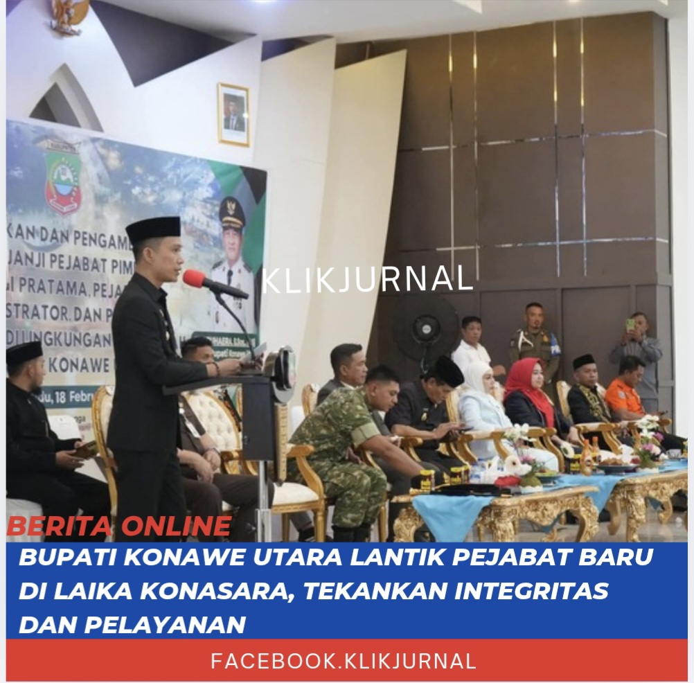 KlikJurnal.Com, WANGGUDU – Pemerintah Kabupaten Konawe Utara kembali melakukan penyegaran birokrasi melalui pelantikan sejumlah pejabat di berbagai tingkatan. Prosesi pengambilan sumpah dan janji jabatan ini dipimpin langsung oleh Bupati Konawe Utara pada Rabu (18/02/2026).