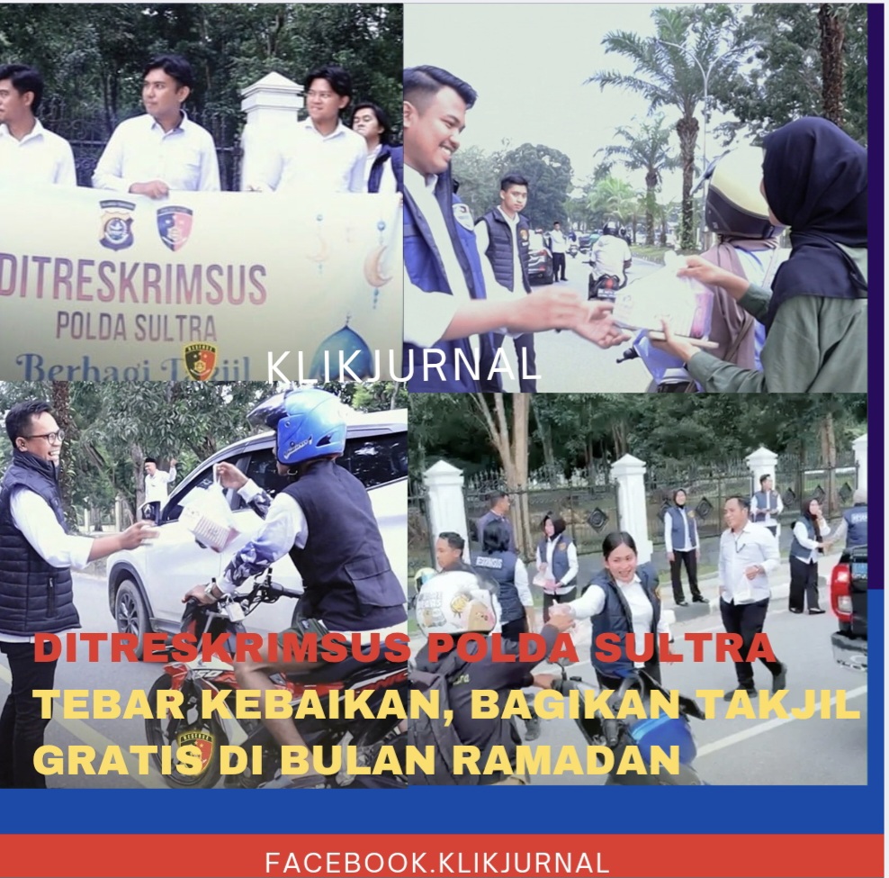 Klikjurnal.Com KENDARI – Personel Direktorat Reserse Kriminal Khusus (Ditreskrimsus) Kepolisian Daerah Sulawesi Tenggara (Polda Sultra) menunjukkan kepedulian sosial dengan menggelar aksi religi di bulan suci Ramadan. Pada Senin (23/02/2026) sore, jajaran Reskrimsus turun ke jalan untuk membagikan paket takjil kepada masyarakat dan pengendara yang melintas.