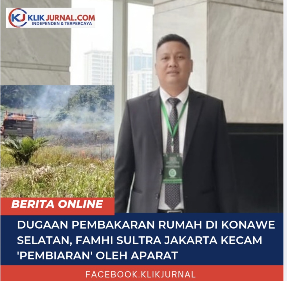 KlikJurnal.Com, JAKARTA – Forum Advokasi Mahasiswa Hukum Indonesia Sulawesi Tenggara (Famhi Sultra) Jakarta mengecam keras aksi pembakaran rumah dan penggusuran lahan sepihak yang diduga dilakukan oleh PT Marketindo Selaras (PT MS) di Desa Lamoen, Kecamatan Angata, Kabupaten Konawe Selatan.