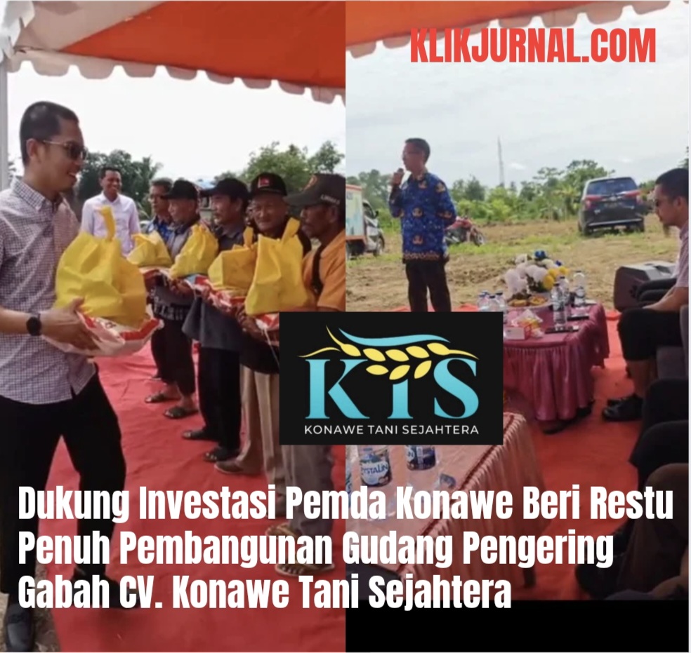 KlikJurnal.Com.Konawe—Selasa 9/12/2025. Petani di Kabupaten Konawe, Sulawesi Tenggara, kini bisa bernapas lega setelah Pemerintah Daerah (Pemda) memberikan restu penuh untuk pembangunan fasilitas Gudang Pengering Gabah (Dryer) oleh CV. Konawe Tani Sejahtera (KTS) di Kecamatan Uepay. Inisiatif strategis ini ditujukan untuk mendukung program pemerintah presiden dalam swasembada pangan.secara tegas memutus rantai intervensi dan permainan harga oleh tengkulak yang selama ini merugikan petani, terutama saat musim panen raya.