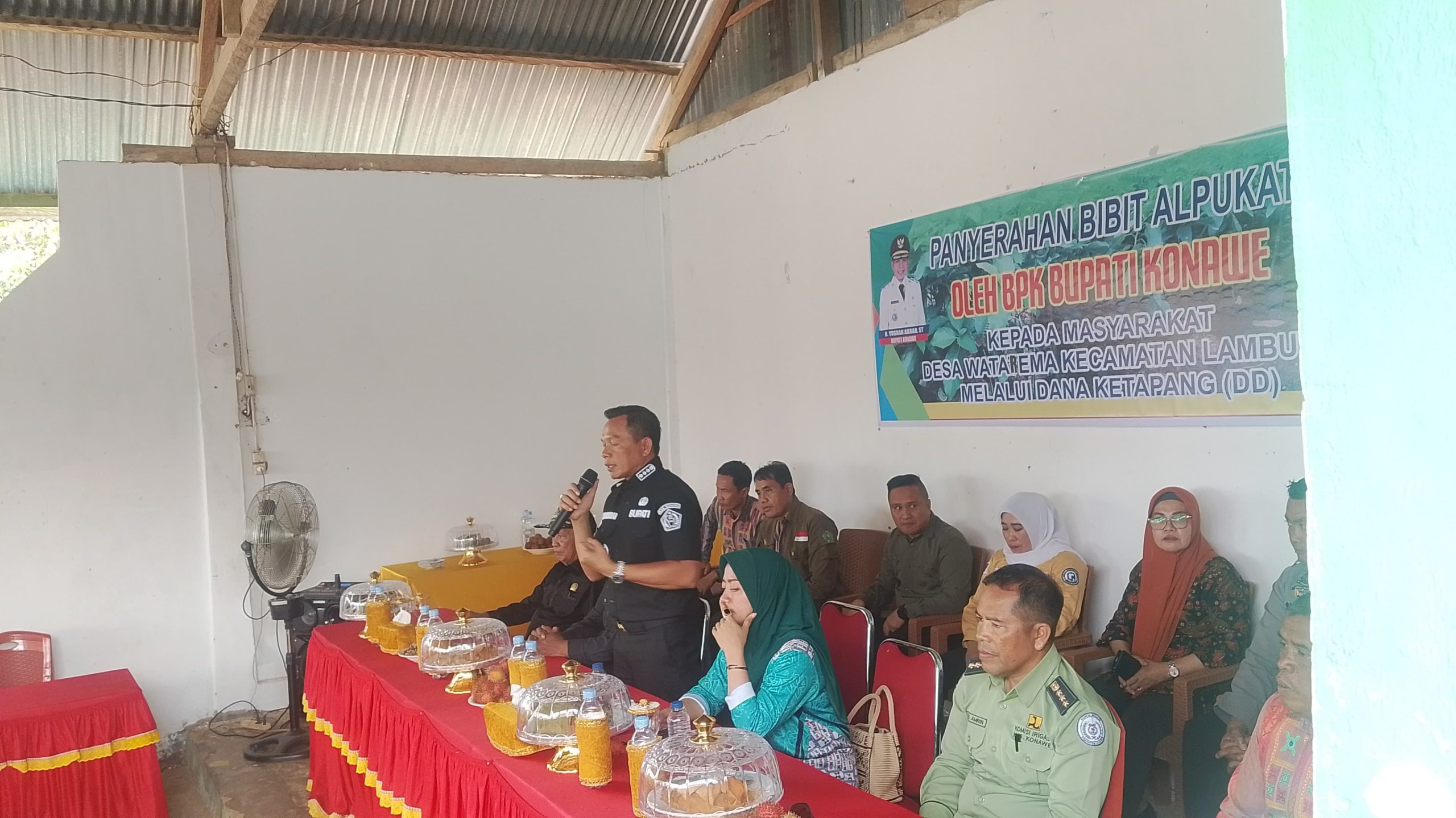 Dalam kunjungannya di Desa Watarema, Yusran Akbar Bupati Konawe secara resmi menyerahkan 500 bibit alpukat kepada masyarakat setempat.