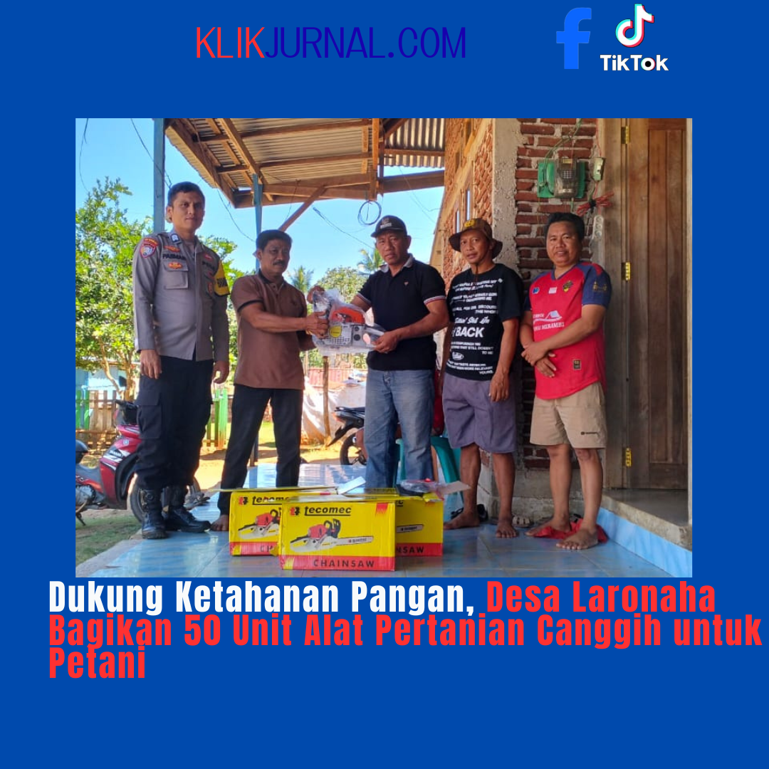 Klikjurnal.Com. KONAWE UTARA – Guna menggenjot produktivitas dan efisiensi pertanian, Pemerintah Desa Laronaha, Kabupaten Konawe, menyerahkan 50 unit alat pertanian modern berupa sensor mini kepada masyarakat [teks]. Bantuan ini diserahkan langsung oleh Kepala Desa Hasrudin. G, didampingi oleh anggota BPD dan Bhabinkamtibmas setempat, pada Sabtu (20/9/2025).