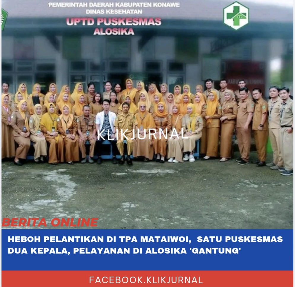 Klikjurnal.Com. ​KONAWE – Pemandangan tak lazim mewarnai rotasi jabatan di lingkup Pemerintah Kabupaten Konawe. Tak hanya lokasinya yang ekstrem—yakni di Tempat Pembuangan Akhir (TPA) Mataiwoi, Kecamatan Tonggauna , namun prosesi pelantikan ini menyisakan tanda tanya besar setelah munculnya “nama ganda” untuk posisi Kepala Puskesmas (Kapus) Alosika.