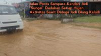 Jalan Poros Sampara-Kendari Jadi “Sungai” Dadakan Setiap Hujan, Aktivitas Sawit Diduga Jadi Biang Keladi