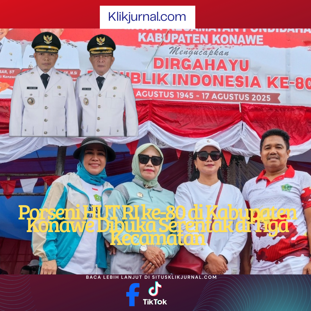 KlikJurnal.Com, KONAWE – Perayaan Hari Ulang Tahun (HUT) ke-80 Kemerdekaan Republik Indonesia di Kabupaten Konawe, Sulawesi Tenggara, dimeriahkan dengan pembukaan Pekan Olahraga dan Seni (Porseni) tingkat kecamatan yang digelar secara serentak pada Selasa, 19 Agustus 2025.