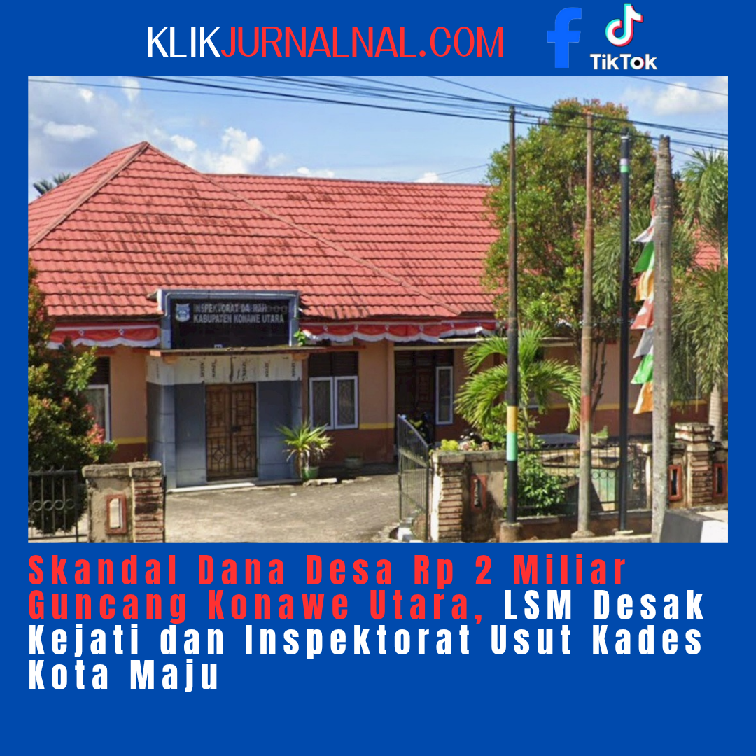 KlikJurnal.Com. KONAWE UTARA – Dugaan korupsi pengelolaan Dana Desa (DD) di Desa Kota Maju, Kecamatan Oheo, Kabupaten Konawe Utara, mencuat ke publik. Lembaga Gerakan Keadilan (GK) Sulawesi Tenggara mendesak Kejaksaan Tinggi Sultra dan Inspektorat Kabupaten Konawe Utara untuk segera melakukan pemeriksaan terhadap Kepala Desa Kota Maju.